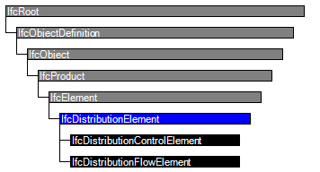 The IfcDistributionElement is further specialized in the IFC specification. Direct instantiation of IfcDistributionElement without an assigned subtype of IfcDistributionElementType provides the meaning of an distribution element proxy.