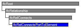 IFC4 CHANGE The objectified relation IfcRelConnectsPortToElement is now specialized for use of dynamically connected ports. For fixed ports, use IfcRelNests instead. Previously this objectified relationship IfcRelConnectsPortToElement defined the relationship that is made between a port and the IfcElement in which it is contained. It is a 1 to 1 relationship. The IfcRelConnectsPortToElement established a whole part relationship between the element and its port. The port is used as the means to connect to other ports in other elements.