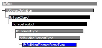 A building element proxy type is used to define the common properties of a certain type of a building element proxy that may be applied to many instances of that type to assign a specific style. Building element proxy types may be exchanged without being already assigned to occurrences.