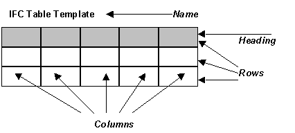 An IfcTable is a data structure for the provision of information in the form of rows and columns. Each instance may have IfcTableColumn instances that define the name, description and units for each column. The rows of information are stored as a list of IfcTableRow objects.