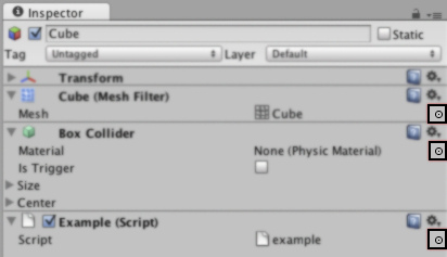 Reference properties are properties that reference other objects such as GameObjects, Components, or Assets. The reference slot will show what kind of objects can be used for this reference.